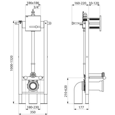 Bâti-support Tempofix 3 564060+464006 en applique piles 6V Delabie, bâti en acier epoxy noir, châssis réglable en hauteur de 0 à 200 mm, livré prémonté, compatible aux cloisons pleines de 10 à 120 mm, équipé de la plaque de déclenchement de chasse directe électronique Tempomatic bicommande F3/4 (déclenchement volontaire ou auto au départ de l’utilisateur, rinçage auto intelligent, 3 programmes, rinçage périodique hygiénique). Version en applique pour fixation sur mur porteur. Code EAN: 3456330179287