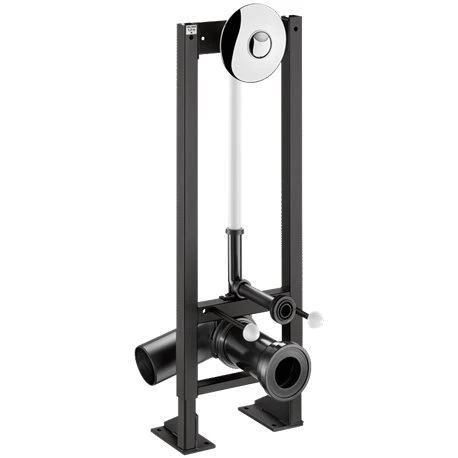 Bâti-support Tempofix 3 578405+578222 autoportante double touche – cloison de 30 à 60 mm Delabie, bâti en acier epoxy noir, châssis réglable en hauteur de 0 à 200 mm, livré prémonté, compatible aux cloisons pleines semi-épaisse de 30 à 60 mm, équipé de la plaque de déclenchement de chasse directe temporiséeTempoflux 2 (rosace en métal chromé diamètre 195 mm, déclenchement souple, robinet d’arrêt et de réglage de débit/volume, double touche 3/6 L). Version autoportante avec pieds larges pour fixation sur sol porteur. Code EAN: 3456330169936