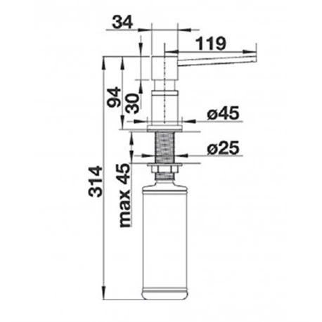 Distributeur de savon Lato Blanco en Chromé. Distributeur facile à remplir par le dessus avec une contenance de 300ml. Coloris Chromé. Diamètre de 35mm pour la découpe. Référence : 525808. Code EAN : 4020684725019