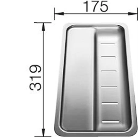Vide sauce Classic Pro 5S en Inox de Blanco. Perforé, pour CLASSIC PRO 5S. Référence : 225251. Code EAN : 4020684508360. Dimensions (Lxl): 319×175 mm.
