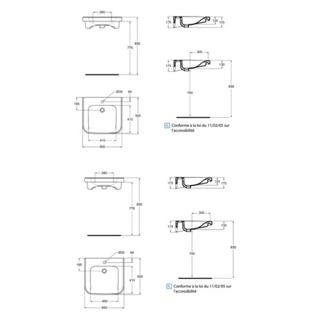 Console D5705AC 35 cm Porcher, sachet de 2 consoles acier époxy blanc et vis de fixation, pour support béton, brique pleine et brique creuse, permet d’adosser le lavabo au mur et d’ajuster la planéité par réglage, code EAN: 3391500461413