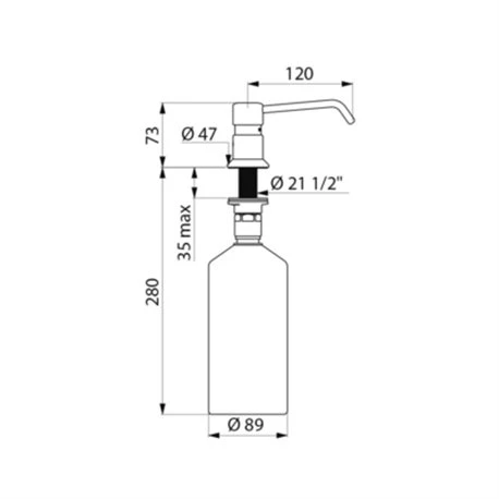 Distributeur de savon liquide 729012 1 Litre Delabie, bec coudé, modèle pour pose sur lavabo, antivandalisme. Corps et poussoir en laiton chromé, système antigoutte, mécanisme verrouillable par vis BTR, remplissage par le haut (en dévissant le poussoir) ou par le bas (en dévissant le réservoir). Code EAN: 3456330016469