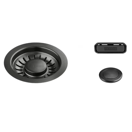 Vidage automatique avec trop-plein et bouton push pour éviers et cuves inox de couleur (bonde Ø90 mm), coloris anthracite, ref 053586 de Franke. Code FUN: 112.0653.035, code EAN: 7612986053586