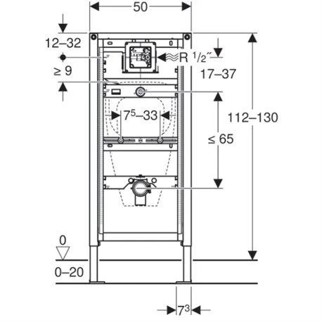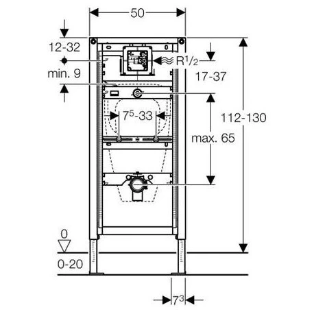 Bâti-support Geberit Duofix pour urinoir, 112-130 cm, universel. Livré avec : équerre de raccordement, boîtier de réservation avec couvercle, tube de raccordement avec joint, bouchon de protection, coude de raccordement, joint, siphon avec joint, tiges filetées et matériel de fixation. Référence : 111.616.00.1. Code EAN : 4025416860952.
