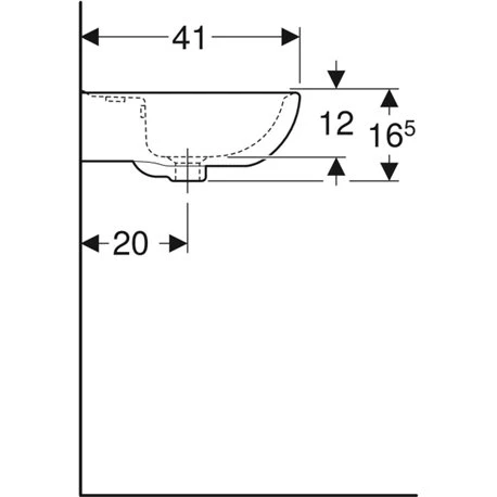 Lave-mains Bastia Geberit avec trop-plein, trou de robinetterie au centre. Référence 501.604.00.1, en céramique, dimensions (hxlxL): 165x410x500 mm, code EAN: 4025410849533
