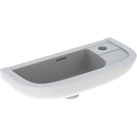 Lave-mains Linéa Geberit référence 00109000000 coloris blanc, compact. Trou de robinetterie à droite, avec trop-plein. En céramique, dimensions (hxlxL): 140x230x500 mm. Code EAN: 3427340019207