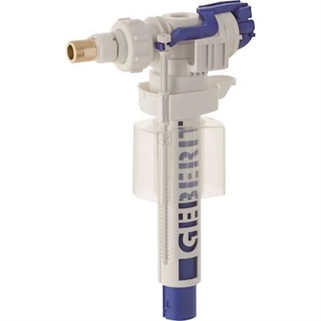 Robinet flotteur Geberit type 380, alimentation latérale 3/8 ». Pour réservoir apparent. Livré avec : adaptateur pour mamelon de robinet flotteur type 350 et raccord à joint américain conique. Référence : 240.700.00.1. Code EAN : 4025416117698.