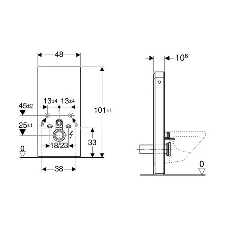 Le Panneau sanitaire Monolith Plus WC suspendu Verre gris velouté / aluminium chromé noir 101 cm 131.221.JK.7 Geberit convient pour des WC suspendu. Il est équipé d’un rinçage double touche Soft-Touch. Il aspire les odeurs avec un filtre alvéolé céramique, paramétrable. Design, il est possède des lumières avec de couleur réglable. En verre, il est de couleur gris velouté avec un habillage latéral en aluminium brossé. Son alimentation se fait par le bas. Il compense les tolérances de construction. De dimensions (lxHxP) 480 mmx1010 mmx100 mm, la cuvette se fixe à une hauteur de 35 cm (+/- 1 cm). Il possède un grand volume de chasse de 4-6l. Son réservoir est isolé contre la condensation. Le pack comprend : 1 kit de raccordement d’eau ; 1 rallonge de coude de chasse 160 mm ; 1 manchette en EPDM Ø44/55 mm ; 1 manchon de raccordement PE-HD Ø90 mm ; 1 manchon de transition en PE-HD Ø90/110 mm ; 2 tiges filetées M12 ; 1 kit d’isolation phonique ; 1 prise femelle pour raccordement sur secteur ; 1 bloc d’alimentation électrique ; 1 cache de réhausse ; 1 matériel de fixation pour cloison sèche et 1 matériel de fixation. Code EAN : 4025410762993