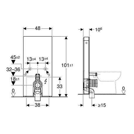 Le Panneau sanitaire Monolith WC sol Verre blanc / aluminium 101 cm 131.202.SI.7 Geberit convient pour des WC au sol, lorsque l’évacuation est au sol. Il est équipé d’un rinçage double touche Soft-Touch. Il aspire les odeurs avec un filtre alvéolé céramique, paramétrable. Design, il est possède des lumières avec de couleur réglable. En verre, il est de couleur blanc avec un habillage latéral en aluminium brossé. Son alimentation se fait par le bas. Il compense les tolérances de construction. De dimensions (lxHxP) 480 mmx1010 mmx100 mm, il possède un grand volume de chasse de 4-6l. Son réservoir est isolé contre la condensation. Le pack comprend : 1 kit de raccordement d’eau ; 1 rallonge de coude de chasse 160 mm ; 1 manchette en EPDM Ø44/55 mm ; 1 coude de raccordement P en PP Ø90 mm ; 1 manchon de transition en PE-HD Ø90/110 mm ; 1 prise femelle pour raccordement sur secteur ; 1 bloc d’alimentation électrique ; 1 cache de réhausse ; 1 matériel de fixation pour la cloison sèche 1 matériel de fixation. Code EAN : 4025410762719