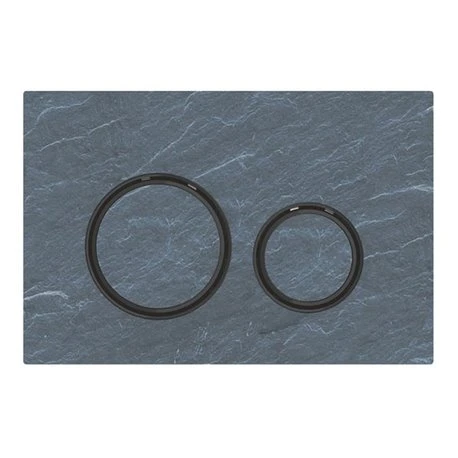 Plaque de déclenchement rinçage double touche Sigma21 Anneaux métallique chrome noir, recouvrement et touches Ardoise Mustang Geberit. Dimensions (hxlxp): 164x246x14 mm, en Zinc / Ardoise. Référence: 115.651.JM.1. Code EAN : 4025410748607