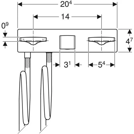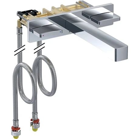 Robinetterie lavabo ONE 116.463.21.1 design rectangulaire, 180 mm à encastrer Geberit, montage mural, robinet mélangeur, pour module fonctionnel à encastrer, limiteur de débit par mousseur, avec clapet anti-retour intégré, avec flexibles de raccordement de 105,5 cm de long. Coloris chromé brillant. Code EAN: 4025410906601