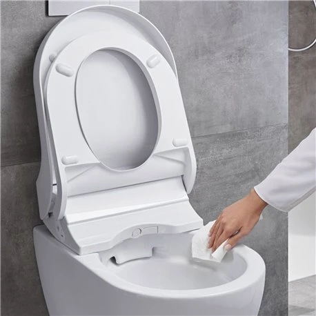 WC à poser AquaClean Tuma Comfort Geberit. Coloris acier inoxydable brossé. Dimensions (Lxlxh) : 520x360x455 mm. Sans Bride. Alimentation Latérale. Cuvette de WC sur pied Ronde. Abattant Frein de chute. Livré avec kit de raccordement d’eau + prise femelle pour raccordement sur secteur + kit d’isolation phonique + cache de protection + patins supplémentaires abattant + produit détartrant 125 mL + kit de nettoyage + kit de raccordement + télécommande avec support mural et piles + matériel de fixation. Version avec chauffe-eau, douchette anale, nettoyage automatique, détection d’utilisateur, aspiration des odeurs, séchoir, lunette d’abattant chauffante, réglages par télécommande, compataible avec l’application Geberit Home. Référence : 146.310.FW.1. Code EAN : 4025410758590