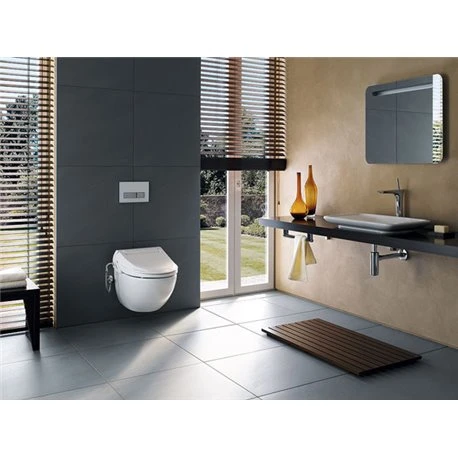 Pack WC suspendu AquaClean 4000, Geberit. Dimensions (Lxlxh) : 505x400x485 mm. Cuvette Ronde en Céramique avec abattant Double Frein de chute. WC sans bride. Couleur : Blanc Alpin. WC complet comprenant chauffe-eau, nettoyage auto, détection d’utilisateur. Référence : 146.135.11.1. Code EAN : 4025416340904