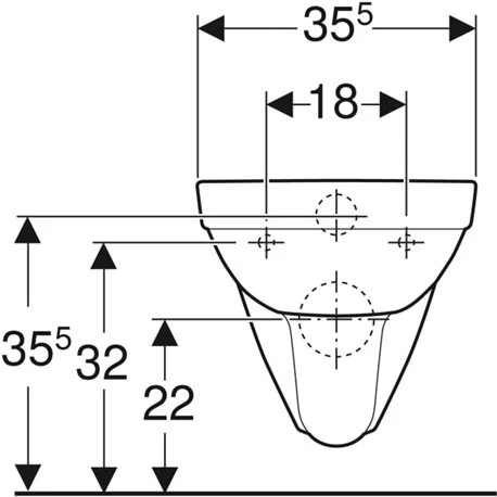 WC suspendu à fond creux Dito Geberit référence 00390900000, en céramique, sans bride. Dimensions (hxlxp): 340x355x530 mm, code EAN: 3427340049341