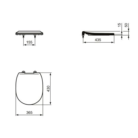 Abattant WC ultra-fin Connect Ideal Standard. Dimensions (Lxl) : 430×365 mm. Fermeture Frein de chute. Abattant double avec charnières acier inoxydable. Coloris Blanc. Entraxe de fixation : 155 mm. Forme ronde. Référence : E772401. Code EAN : 5017830474807