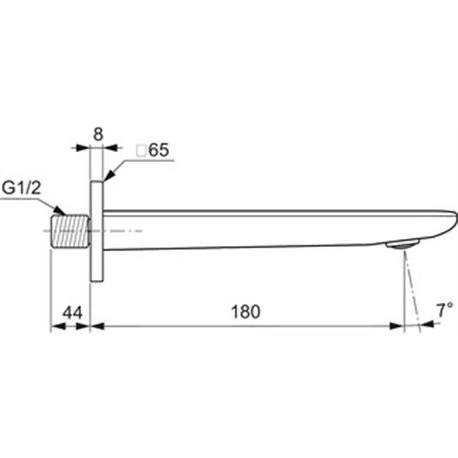Bec mural lavabo de la marque Ideal Standard. Les dimensions (HxLxP) sont : 65x65x210 mm. Tirette et vidage non-inclus. Type Bec fixe à encastrer. Modèle : Conca. De couleur : Chromé. À utiliser avec une Baignoire. Déclenchement manuel. Saillie 23,2 cm, projection 18 cm. Référence : BC769AA. Codes EAN : 3800861084891.