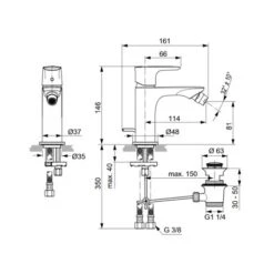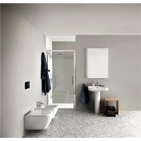 Le bidet suspendu I.Life S de chez Ideal Standard est fabriqué en gré fin. Il est percé avec un trou central pour la robinetterie et un trou de trop plein. Dimensions (Lxlxh) : 35,5 x 48 x 298 cm. Référence : T459301. Code EAN : 8014140491743