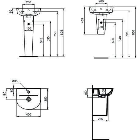 Lave-mains Arc Connect Air Ideal Standard. Dimensions (Lxlxh) : 400x350x95 mm. Fixation murale par 2 tire-fonds. Lave-mains en grès fin avec trou de trop-plein. Percé 1 trou central pour la robinetterie. Référence : E138401. Code EAN : 5017830526124