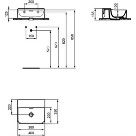Lave-mains Conca avec trop-plein, sans trou Blanc Brillant Ideal Standard. En grès fin. Dimensions (HxlxP) : 165x400x350 mm. Référence : T381101. Code EAN : 8014140458272.