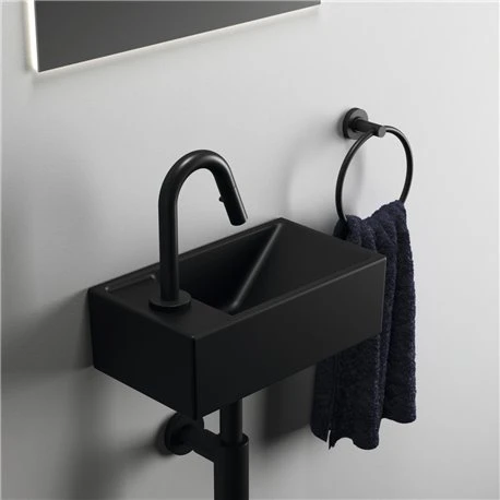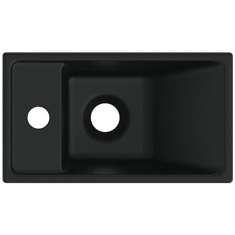 Le lave-mains version gauche Tempo de chez Ideal Standard est fabriqué en grès fin. Il dispose d’un trou central pour la robinetterie et il se fixe au mur par 2 tire-fonds (non fournis). Vendu sans trou de trop-plein. Couleur : noir mat. Dimensions (Lxlxh) : 37x21x120 mm. Référence : E2113V3. Code EAN : 5017830556879