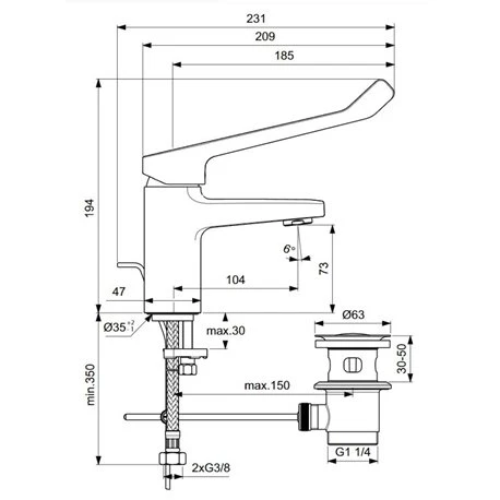 Le mitigeur lavabo Ceraplan avec tirette et vidage de chez Ideal Standard est équipé d’un bec fixe avec manette rallongée et d’un aérateur avec limitateur de débit maxi 5L/min. Il dispose d’une cartouche Ø 38 mm Firmaflow avec pivot en métal et limiteur de température intégré. Il est pourvu d’une poignée en métal, d’un système de fixation rapide EasyFix et d’indicateurs rouge/bleu imprimés sur la manette. Flexibles d’alimentation anti-torsion PEX 3/8″ – 350 mm. Bonde et tirette courbée en métal. Hauteur sous aérateur : 73 mm. Hauteur totale : 194 mm. Projection : 104 mm. Référence : BD218AA. Code EAN : 3800861103592