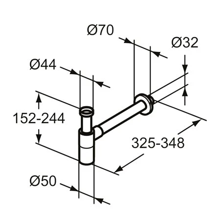 Siphon réglable pour lavabo à sortie horizontale de la marque Ideal Standard. Dimensions (lxHxP) : 70x152x348 mm. Couleur : Noir mat. Référence : T4441XG. Code EAN : 8014140483397