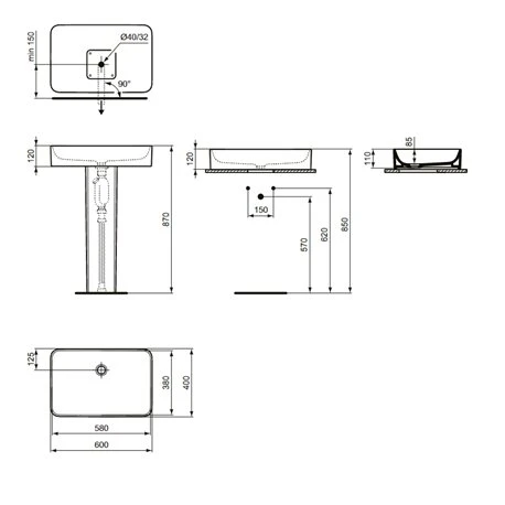 Ideal Standard Vasque Conca 60×40 Cm Sans Trop-plein