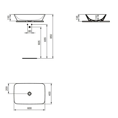 Vasque Connect Air E034801 60×40 cm sans trop-plein Ideal Standard, à poser, en grès fin, non percée, émaillée 4 faces, code EAN: 5017830506881