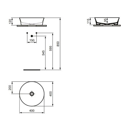Vasque Ipalyss Ideal Standard. Dimensions (LxlxH) : 400x400x120 mm. Vasque ronde à poser en Diamatec alliant finesse et résistance extrême. Couleur : Nude avec finitions mattes. Vasque sans trop plein et sans plage de robinetterie. Bonde à écoulement libre incluse. Poids : 7 kg. Référence : E1398V7. Code EAN : 5017830542698