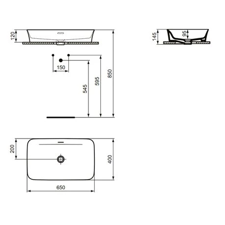 Vasque Ipalyss Ideal Standard. Dimensions (LxlxH) : 650x400x120 mm. Vasque à poser en Diamatec alliant finesse et résistance extrême. Couleur : Vision avec finitions mattes. Vasque avec trop plein et sans plage de robinetterie. Bonde à écoulement libre non incluse, à commander. Poids : 10,5 kg. Référence : E1887V8. Code EAN : 5017830543039