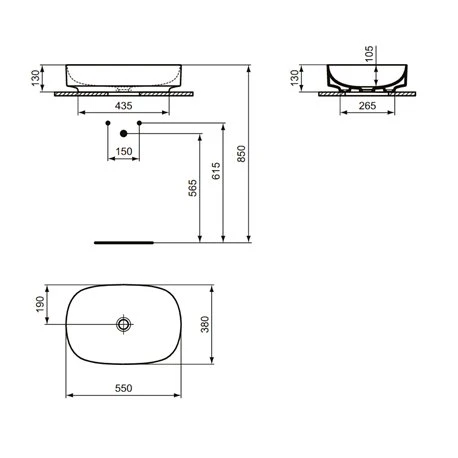 Vasque ovale Linda-X de la marque Ideal Standard. Les dimensions sont (lxHxP) : 550x130x380 mm. De couleur Blanc brillant, en Diamatec (mélange d’oxyde d’aluminium, d’argile, de sodium et de potassium – matériau innovant alliant finesse et résistance extrême). Sans trou de robinetterie, sans trop-plein. À poser. La pose de la vasque sur meuble Conca est possible sur meuble plan ou sur meuble avec non percé. Référence : T440201. Code EAN : 8014140484998