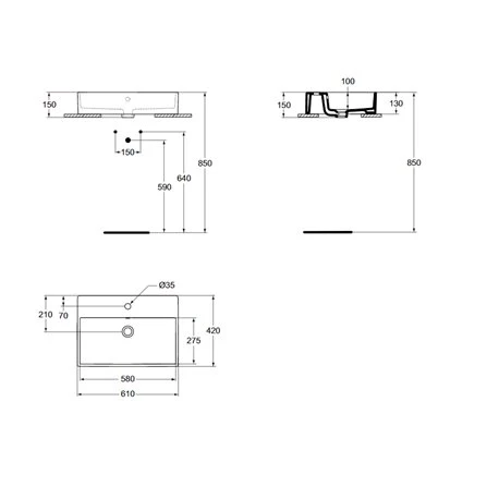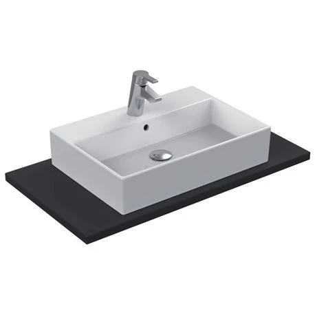 Vasque Strada K078101 60×42 cm avec plage de robinetterie Ideal Standard, à poser, en grès fin, percée 1 trou central pour la robinetterie, rectifiée et émaillée 4 faces, code EAN: 4015413031424