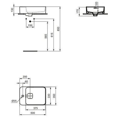 Ideal Standard Vasque Strada II 50×35 Cm Avec Plage De Robinetterie Sur Le Côté