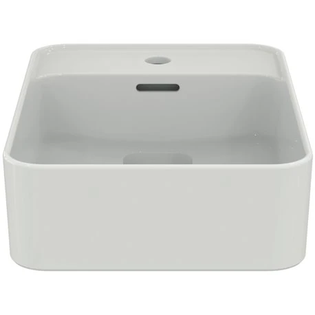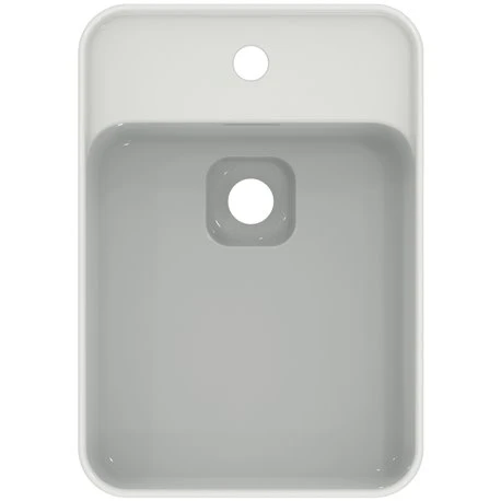 Vasque Strada II T296401 50×35 cm avec plage de robinetterie sur le côté Ideal Standard, à poser, en grès fin, trou de trop-plein, émaillée 4 faces. Cache-bonde en céramique fourni. Code EAN: 8014140448549