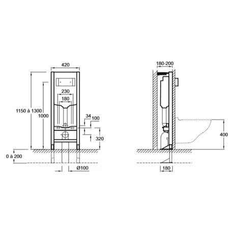Bâti-support autoportant Hors collection Jacob Delafon. Avec réservoir à mécanisme de 3/6 Litres. Il peut résister à une charge de 400 Kg. Ce bâti-support est livré avec les fixations murales et mesure 420x1150x180 mm (LxHxP). Référence : E24155-NF. Code EAN : 3440893935220