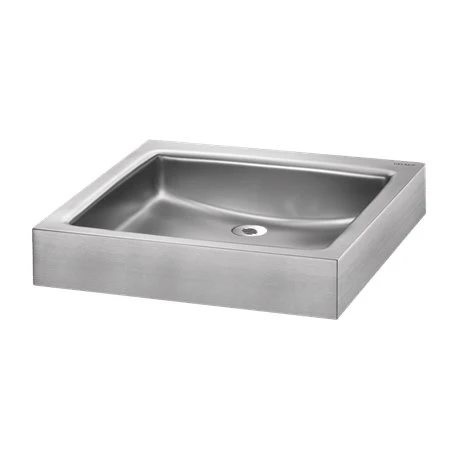 Lavabo Unito 120830 sans trou de robinetterie Delabie, à accrocher au mur, 395×350 mm, inox 304 bactériostatique, épaisseur inox 1,2 mm, finition anticoupures, livré avec bonde 1 »1/4, sans trop-plein, livré avec fixations et supports, marquage CE, conforme à la norme EN 14688, poids 3,3 kg, code EAN: