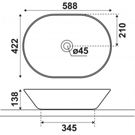 Vasque Liao 4037N blanc Aquatop, de forme Ovale, hauteur: 138 mm, largeur: 422 mm, longueur: 588 mm en céramique, 1 vasque, modèle Liao, pose: A poser, finition: Emaillée 4 faces, trop-plein: Sans.