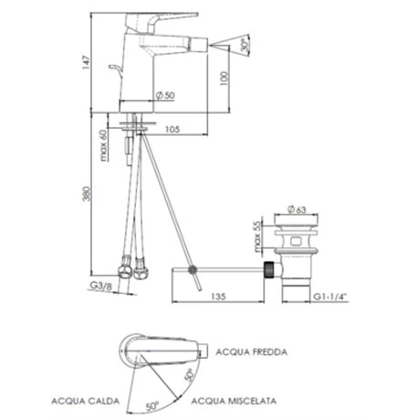 Le robinet bidet monocommande C3 dispose d’un mousseur anticalcaire, d’une tirette et d’un vidage en laiton. Les flexibles de raccordement sont en inox 3/8. Hauteur: 150mm. Référence: 859057. Code EAN : 3612022016333.