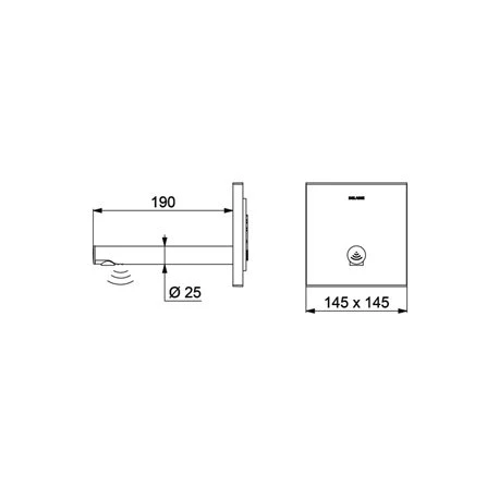 Le Robinet de lavabo encastrable avec Boîtier d’encastrement Poli brillant Sur secteur Bec L190 mm 370SBOX+370110 Delabie possède une alimentation sur secteur 230 V/6V (câble et transformateur fournis). La plaque de finition est en Inox de 145 x 145 mm avec de l’électronique embarquée. L’installation est modulable (rails, mur plein, panneau). Il est compatible avec les parements de 10 à 120 mm (en respectant la profondeur d’encastrement minimum de 83 mm). Il est adaptable tuyaux d’alimentation standard ou »pipe in pipe ». Il possède un raccordement de F1/2 ». Il est livré en 2 kits. Il est équipé d’un détecteur de présence infrarouge actif. Le rinçage périodique hygiénique se fait toutes les 24 h (réglable à 12 h ou OFF) après la dernière utilisation. Le débit est préréglé à 3 l/min à 3 bar, ajustable. Il possède un brise-jet antitartre. Il possède un bec à intérieur lisse et à faible contenance. Code EAN : 3456330194549