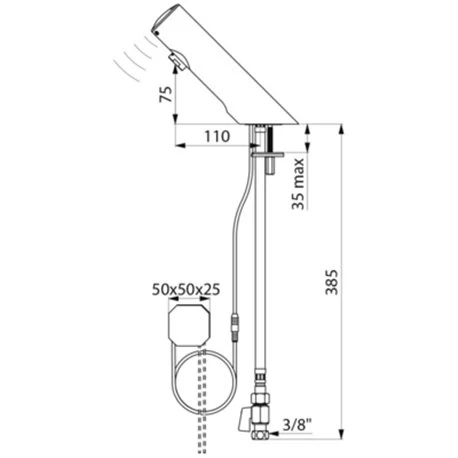 Robinet lavabo 440000 Tempomatic 4 alim. Sur secteur – bloc encastré, Avec robinet d’arrêt Delabie, hauteur 75 mm, électrovanne antistagnation et module électronique intégré, brise-jet antitarte, rinçage périodique, débit préréglé à 3 L/min ajustable, détection de présence infrarouge actif optimisée en bout de bec, corps en métal chromé. Code EAN: 3456330151269