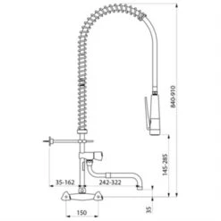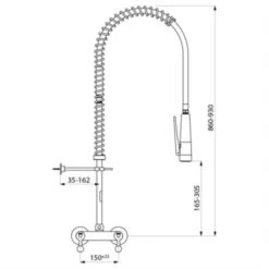 Combiné De Prélavage Douchette Antitartre à Picots Avec Colonne Longue Sans Bec 435020