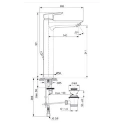 Ideal Standard Mitigeur Lavabo Monotrou Joy Réhaussé, Chrome, Tirette Et Vidage Bonde Métal