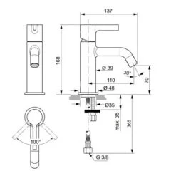 Ideal Standard Mitigeur Lavabo Ceraplan Avec Tirette Et Vidage H 161 Mm
