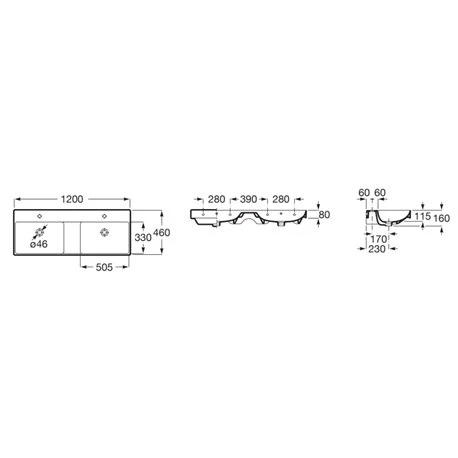 Roca Lavabo Ona 120×46 Cm Blanc Mat