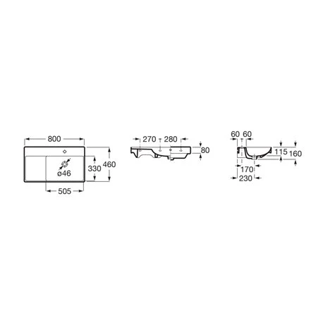 Roca Lavabo Ona 80×46 Cm, Version à Droite, Blanc Brillant